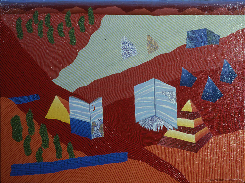 Books Meet Pyramids, Oil on Canvas, 1983, 12 x 16 in.