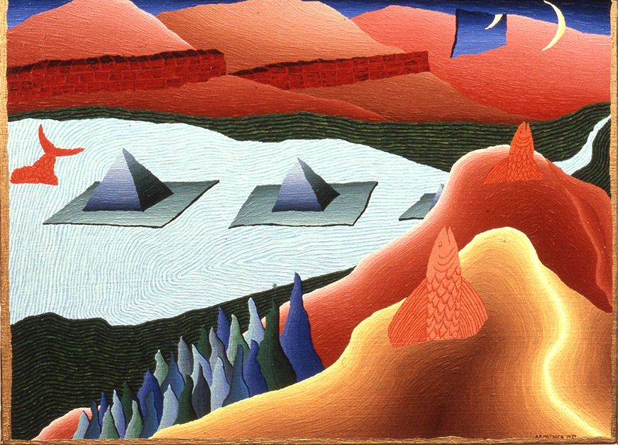 Fish and Pyramids, Oil on Canvas, 1981, 11 x 16 in.