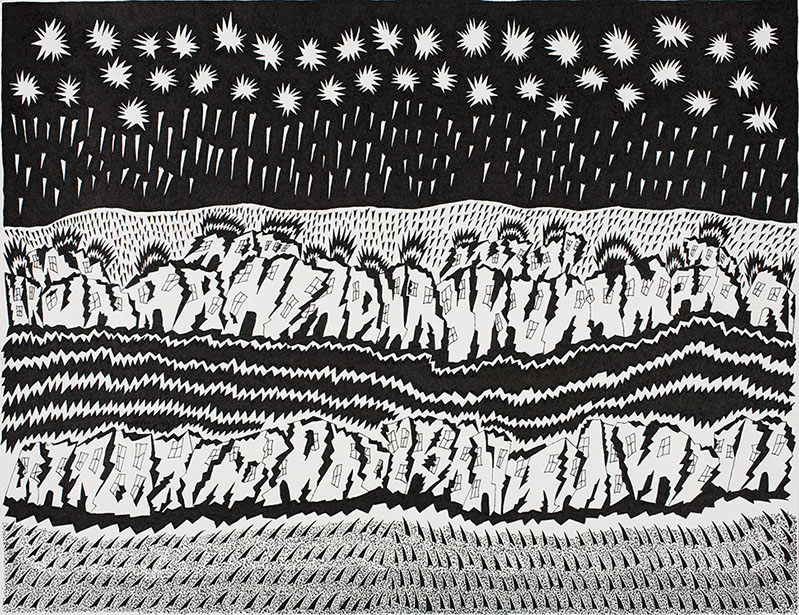 Tora Bora #1, Pen and Ink, 2010, 17 x 22 in.