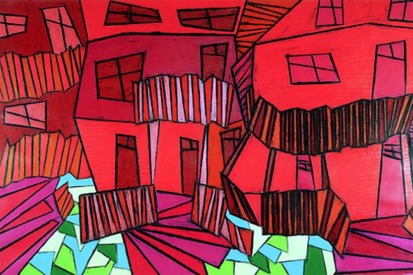 Gary's House, Crayon on Paper, 1989, 21.75 x 30 in.