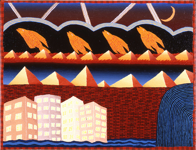 Fish and Pyramids, Oil on Canvas, 1981, 11 x 16 in.