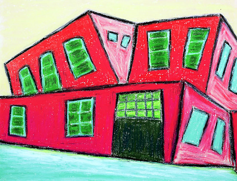 Gary's House, Crayon on Paper, 1989, 21.75 x 30 in.