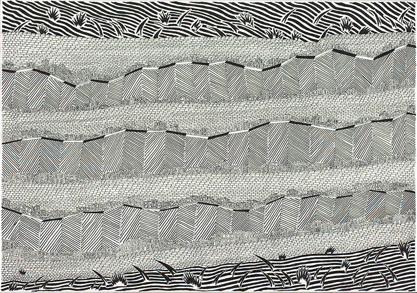 Wall, Pen and Ink, 2009, 13.5 x 21.5 in.