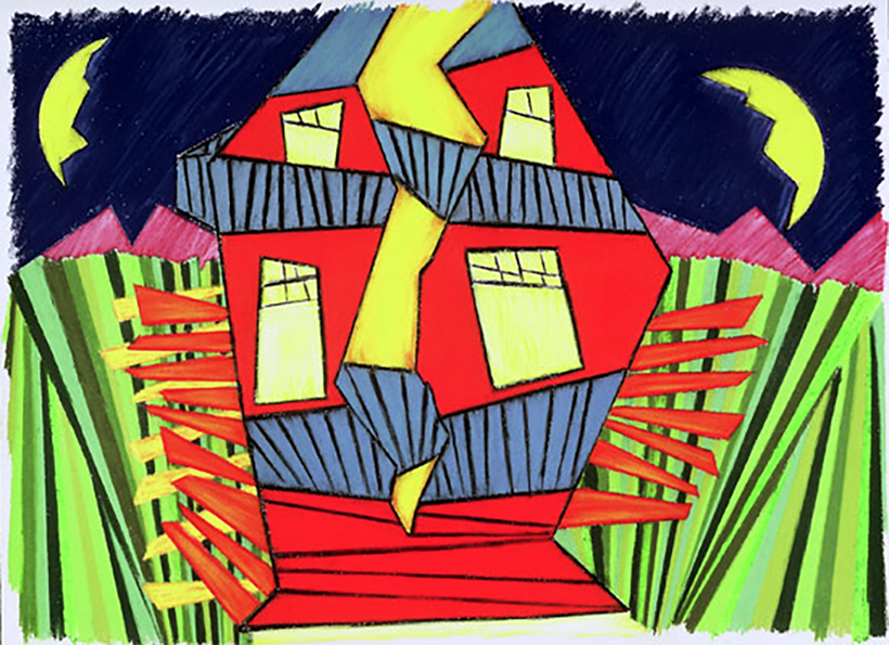 Broken House, Crayon on Paper, 1989, 21.75 x 30 in.