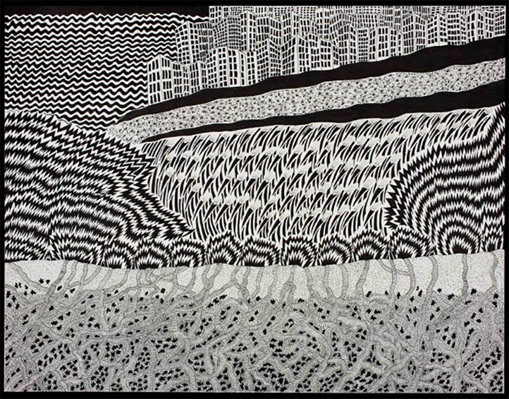 The Green Zone, Pen and Ink, 2010, 22 x 17 in.